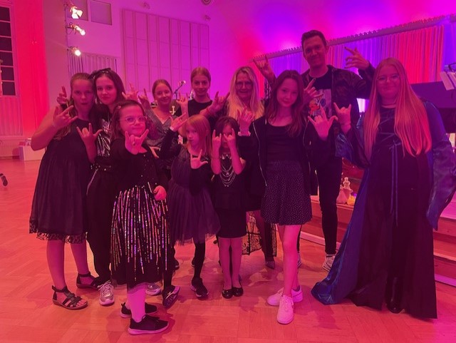 Sunnuntai olikin sitten suuren jännityksen päivä, konserttipäivä. Kamat kerättiin ripeästi leirikeskuksesta ja suunnattiin kohti konserttitaloa, jossa kenraaliharjoitus jo odotti. Hienot nimikyltit ripusteltiin portaikkoon, edellisten leirien julisteet pääsivät seinille ja juhlavalmistelut saatiin onneksi kasaan juuri ennen kuin ihmisiä alkoi tulla lippujonoon. Rannekkeet olivat hitti ja katsojia tulikin ennätysmäärä, josta olimme kiitollisia. Viimein päästiin soittamaan kaikki se, mitä oltiin leirillä opittu ja loppu on historiaa.